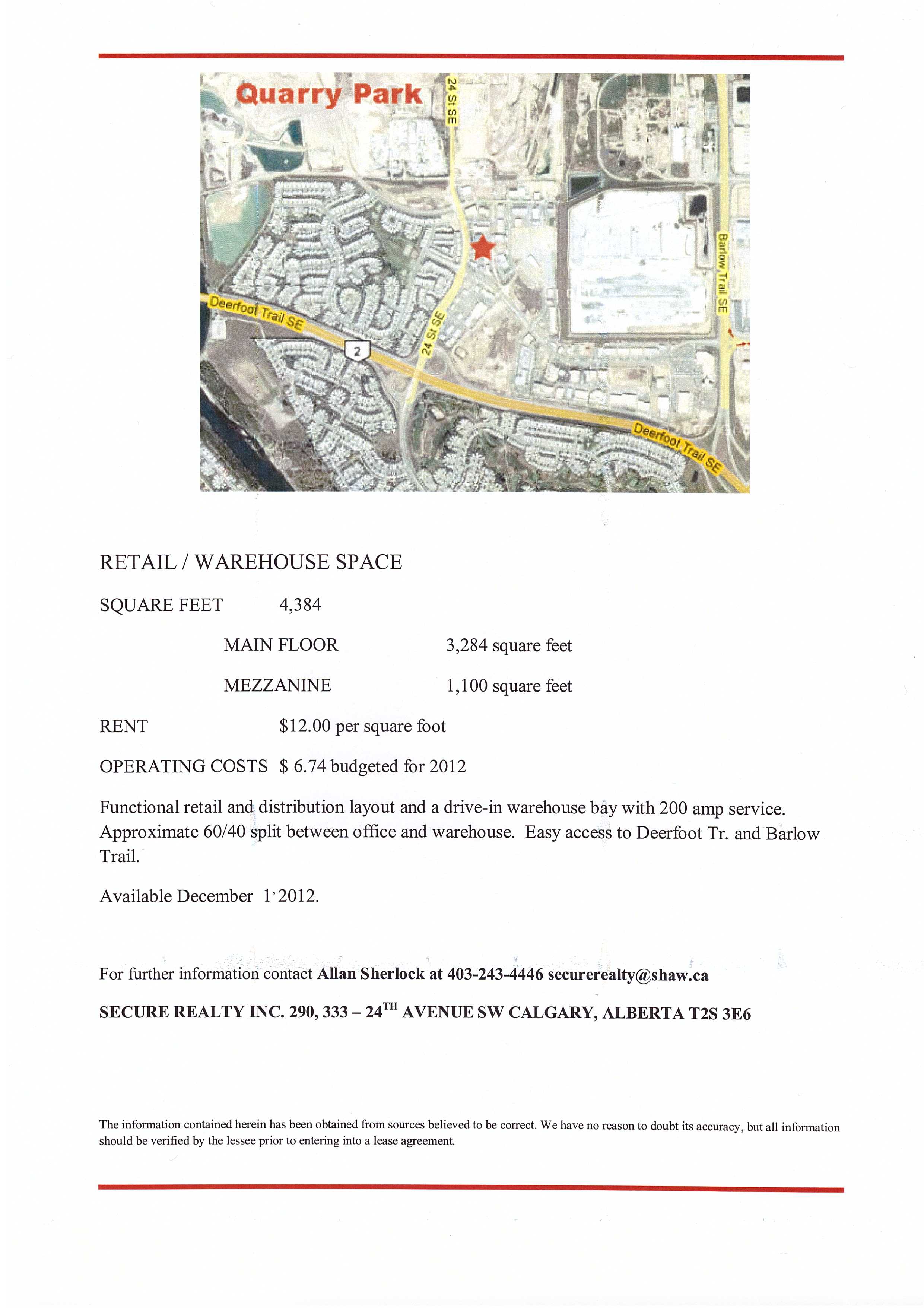 Easy access to Deerfoot Tr. and Barlow Trail.